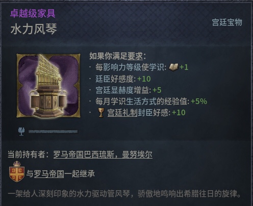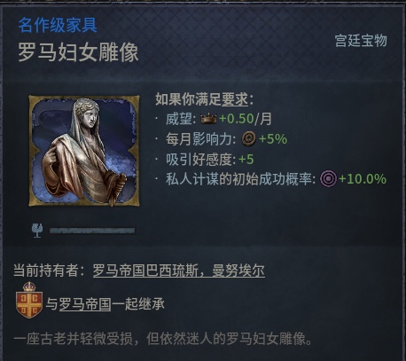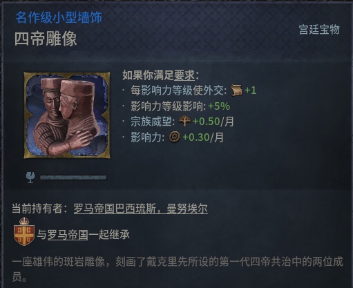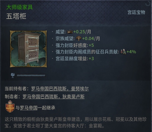 大皇宫是一个建筑群,我们这里还是以游戏为主,只讲游戏中提及的,下图是游戏中官僚传承(游戏中有很多不同的宗族传承,这是其中之一,效果相当于给家族加属性)的图卷。