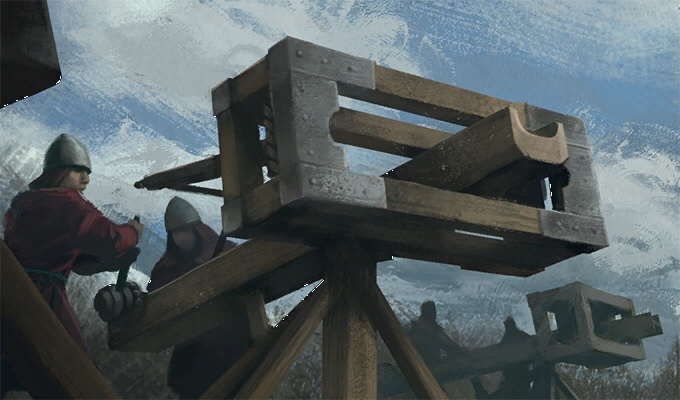 长矛大小的弩箭从这些基于扭力的机器中射入被围困的城池和敌阵,造成恐惧和混乱。