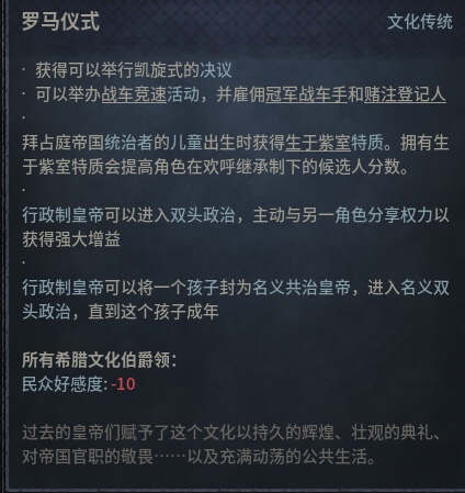 皇帝会在赛马场举办盛大的仪式,比如战车比赛,继角斗士之后的又一项罗马传统,在游戏中,拥有罗马仪式传统的文化的统治者,可在首都举办,赌赢了有很多钱,是个赚钱的好东西。