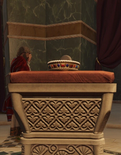 首先是放在封面的这张图,p社最爱的巴西尔一世在加冕。都说维京人印度人是p社野爹,我看巴西尔也是不仅加载图里有他,为了玩家游玩他时体验良好,还让巴西尔快提前一年干掉前任皇帝登基,并且年轻了25岁。