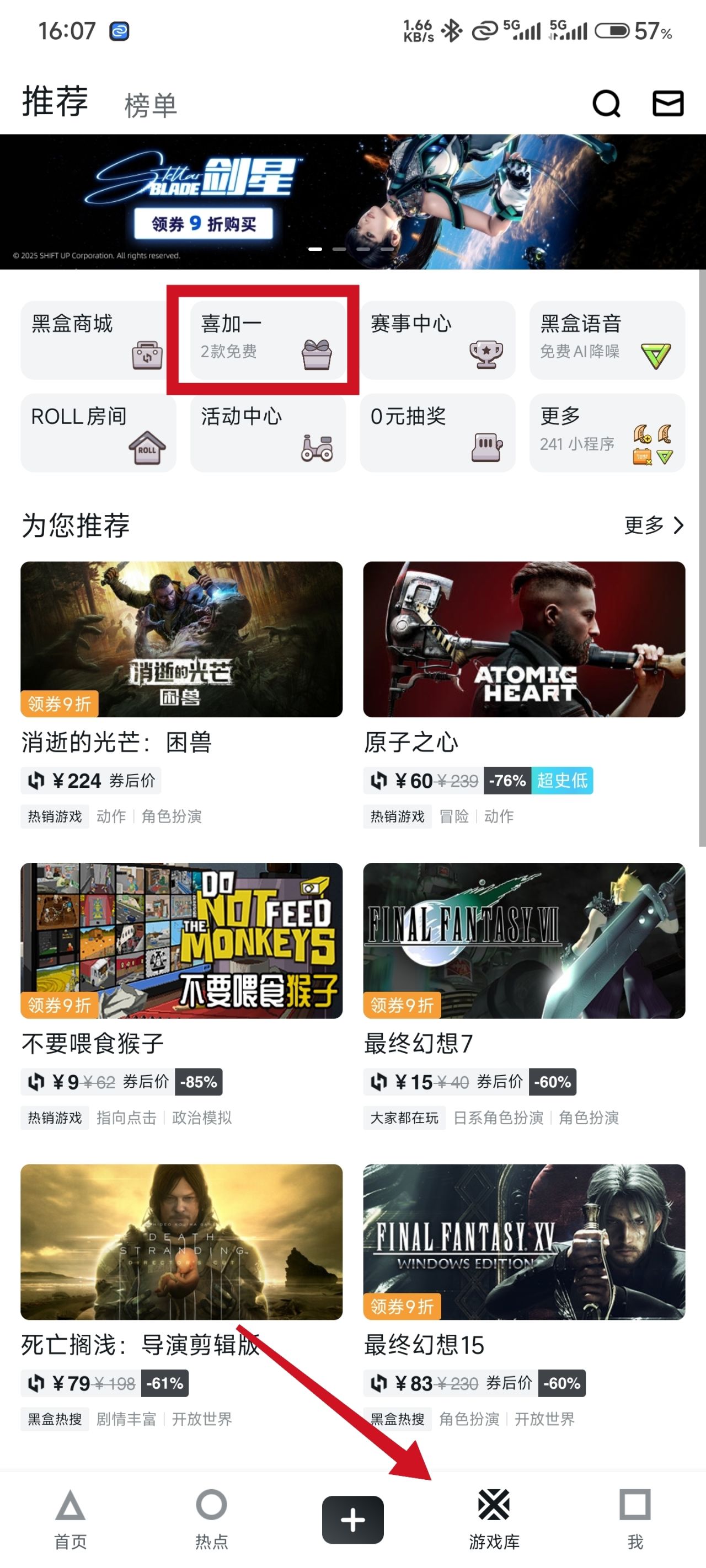 刷小黑盒時記得多多關注下方遊戲庫中第二個喜加一小程序哦,會時不時出現一些限免遊戲。