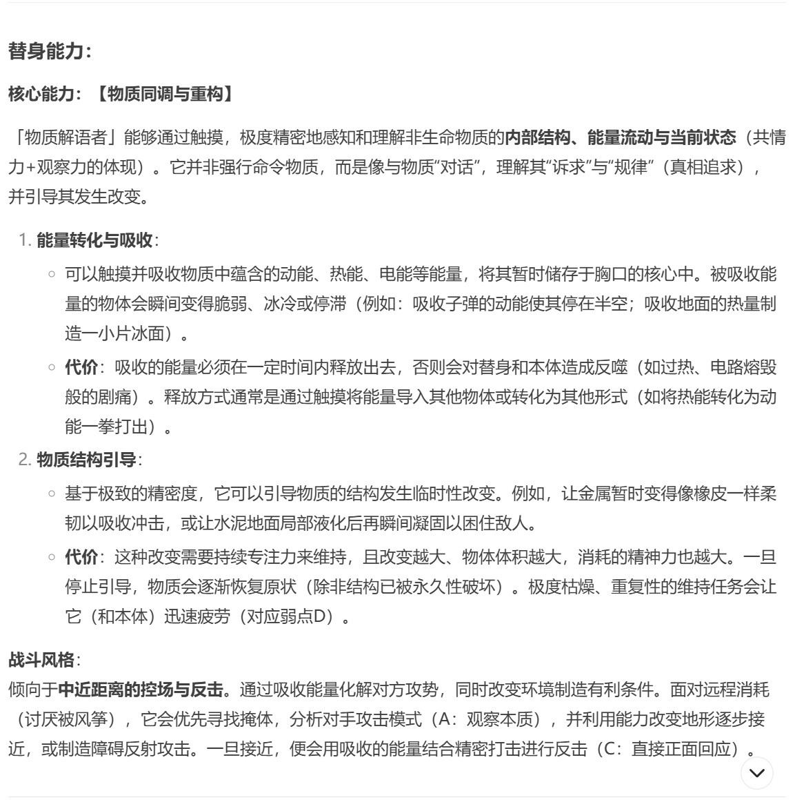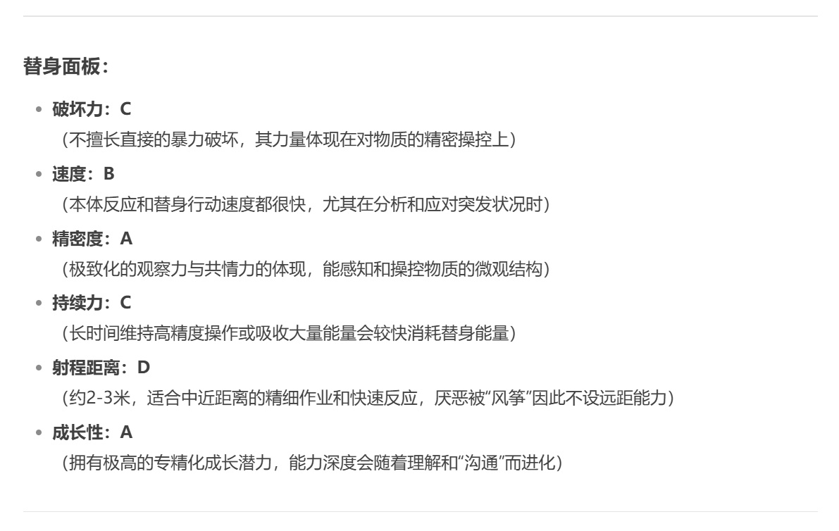 E.生命/自然(如治愈、植物操控、动物沟通(直接锁定替身的核心能力体系,避免“能力与兴搬脱节”