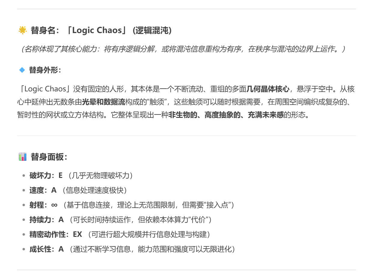 下面是问卷,总共20道,盒友们可以做一下,文章的最后有我的替身展示环节,以及deepseek给自己设计的替身,不要错过啦!