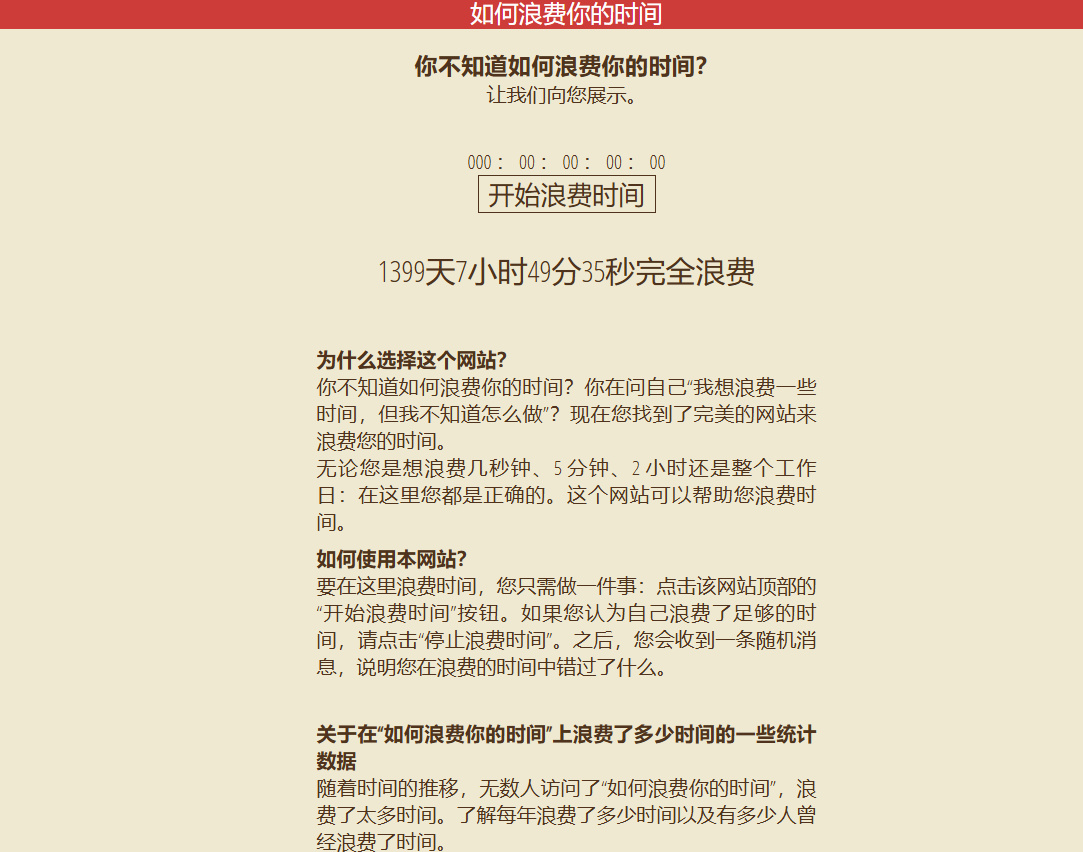 打開網站就開始計時,看你到底在這個網站浪費了多少時間,沒有任何作用