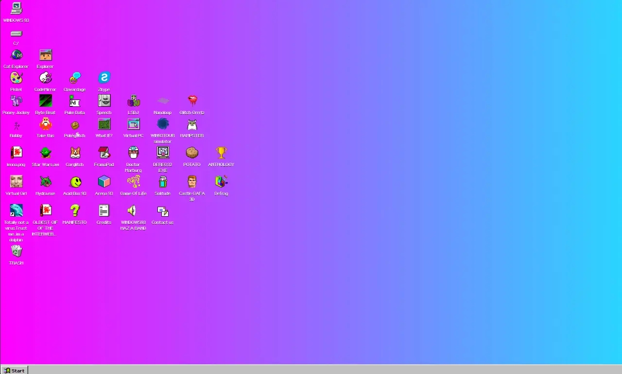 這個網站能變成一個超高質量的仿真系統,我擬一個從未發佈過的1993年版本的Windows系統,桌面上有許多可玩的小程序,甚至還有病毒程序可以體驗
