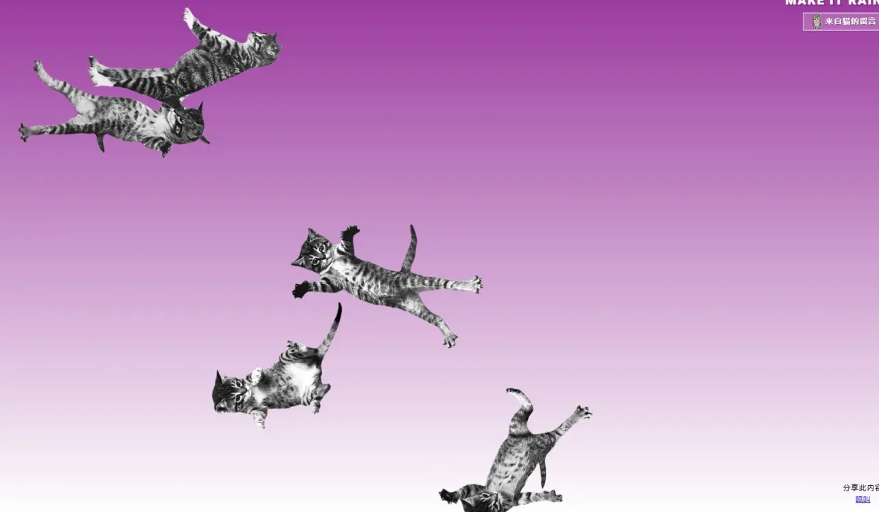 這個網站一打開就有很多的貓在一直跳來跳去,我們也可以將他扔出屏幕外