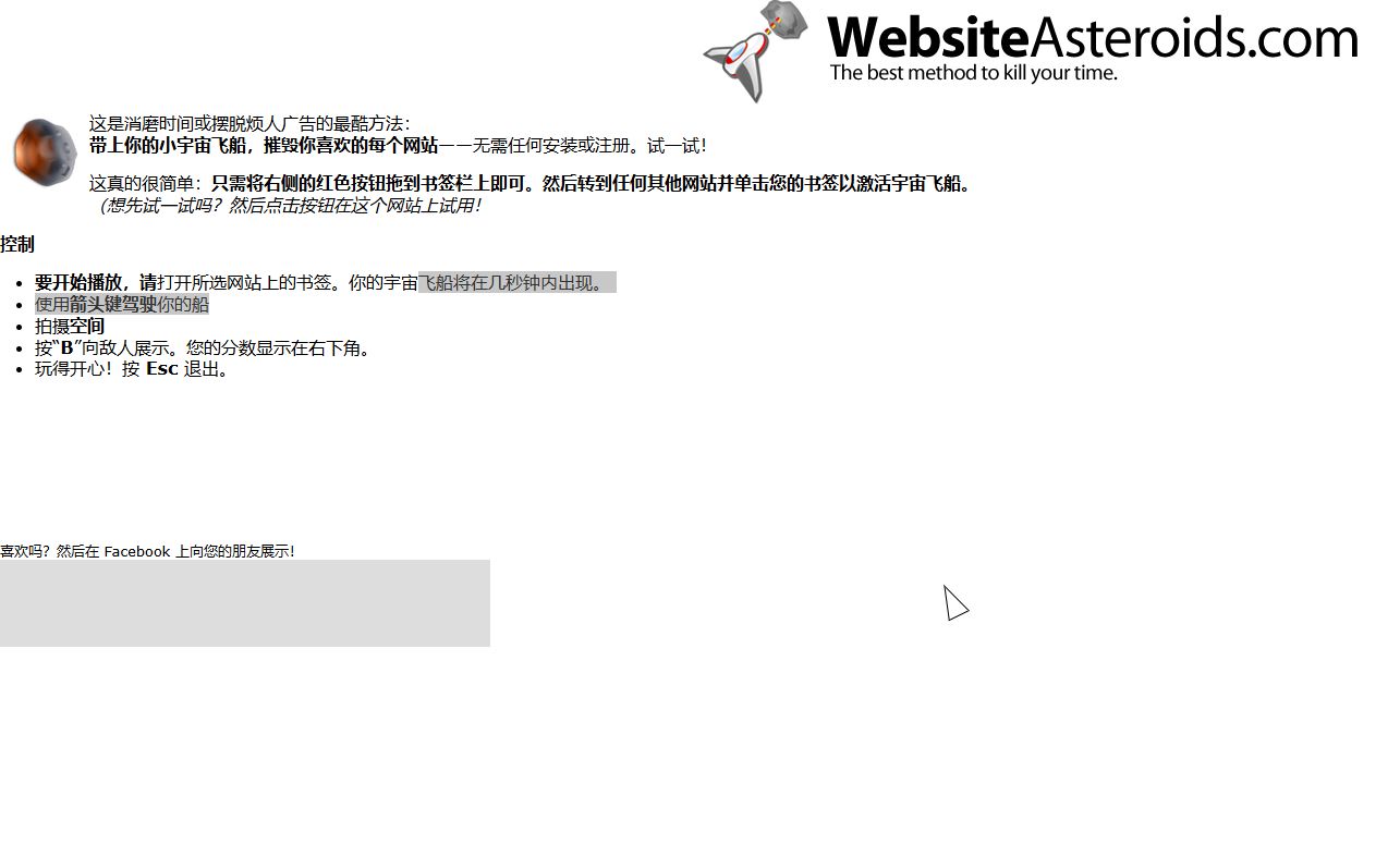 需安裝註冊,可以操作一輛小飛船,摧毀你喜歡的那個網站,具體信息可看網頁內容