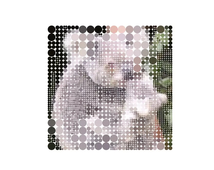 初始屏幕只呈現幾個大圓點懸停或點擊時圓點會分裂成更多的小圓點,每次細分都會讓細節更清晰,最後你會看到一張圖片