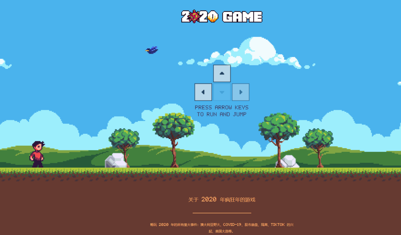 在這個遊戲裏,我們將操控自己的角色,去迎接2020年那些令人印象深刻的記憶與困難,利用鍵盤的上下左右、空格鍵來衝破一道道難關,以另類的方式重新體驗一遍那個深刻的2020