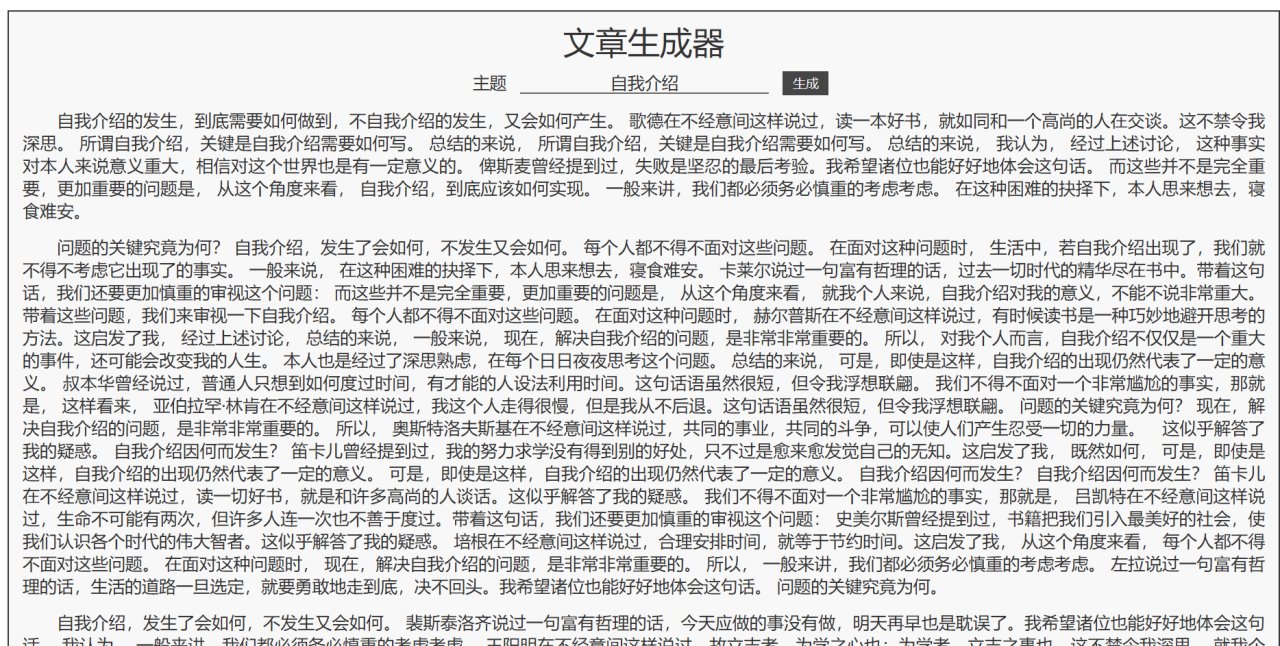 你只需要輸入一個主題,瞬間就能給你生成一篇5000字以上的文章!雖然說是狗屁不通的文章,但你仔細看看內容,竟然會覺得寫得還有點深度