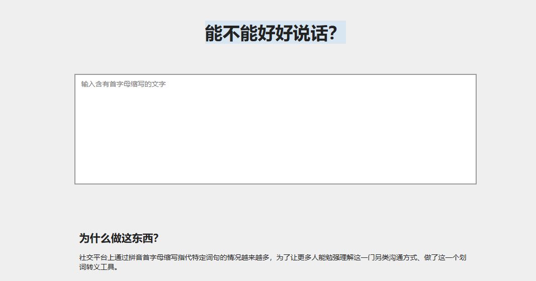 “yygq”、“yysy”、“bbl”,經常看到網絡上的那些英文縮寫,是不是一頭霧水,覺得自己快脫離世界了?有個熱心網友做出了這個網站,專門翻譯這些讓人摸不着頭腦的英文縮寫