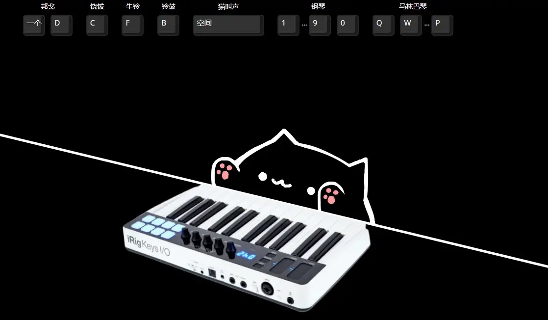 這個網站上有一隻可愛的小貓,按鍵盤上的按鍵,它就會發出一聲樂器的聲音,並切換成那個樂器,共有七種