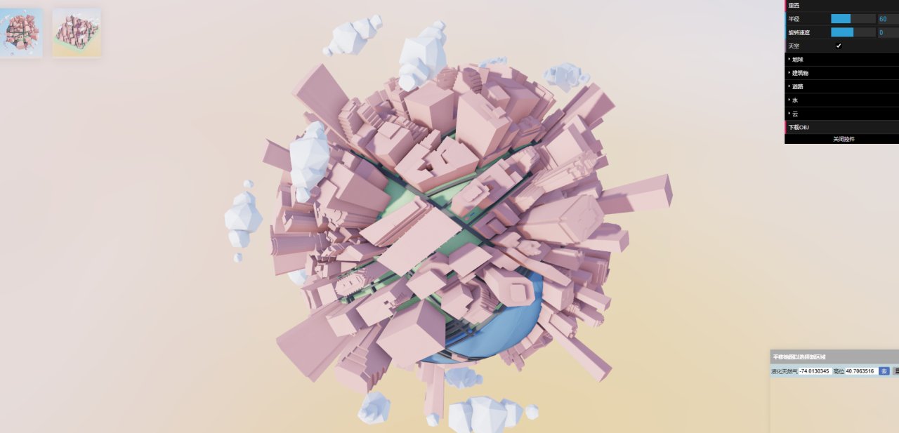 星球上的這些3D建築並不是隨機生成的,而是對接了 MAPTALKS 上的真實數據,直接拖拽右下角的地圖,就會實時刷新