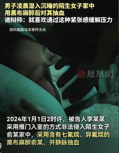 陌生男子李某某潜入室内,并用含有七氟烷、异氟烷的黑布麻醉