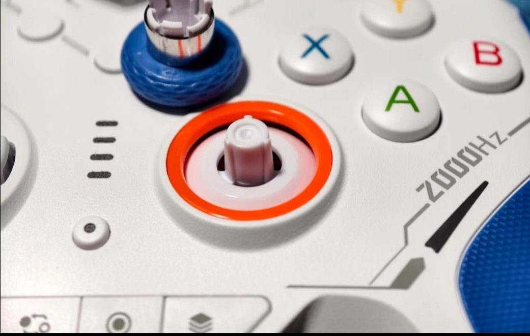 核心的摇杆得重点说,用的是ALPS胶钉碳膜摇杆,精度是非常棒的,玩FPS瞄准的时候,细腻的操控感很明显。而且内部胶钉结构让复位特别准,稍微动一下摇杆,反馈都清晰得很。