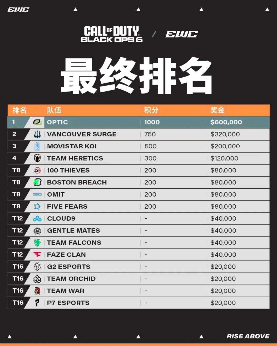 決賽OpTic 4-0 Vancouver Surge奪得2025年電競世界盃《使命召喚:黑色行動6》項目的冠軍
