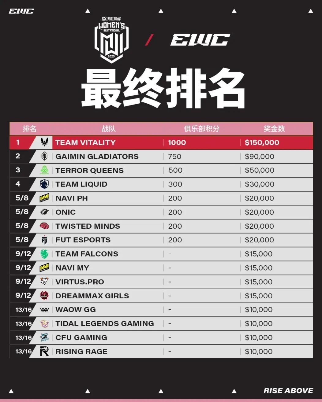 決賽小蜜蜂 4-0 GG 奪得2025年電競世界盃《決勝巔峯》(女子)項目的冠軍