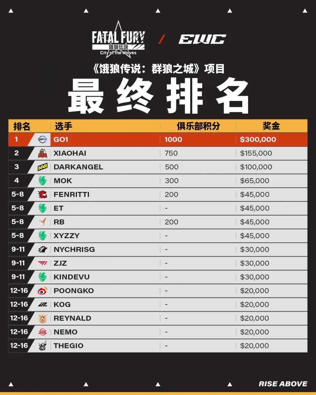 決賽GO1 5-3 XIAOHAI 奪得2025年電競世界盃《餓狼傳說》項目的冠軍