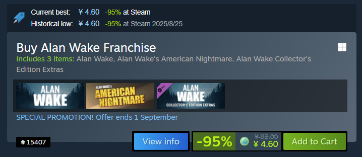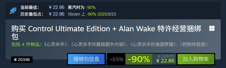 想購買《心靈殺手》系列和《控制:終極合輯》的,可以購買這兩個,價格爲(14.8+4.6=19.4)元,比單獨購買下圖三的捆綁包便宜