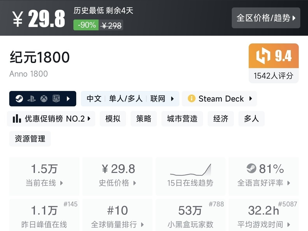 一款令人沉浸的模擬經營遊戲,非常殺時間,帶你穿越到19世紀的工業革命時代,體驗從一個小島發展到龐大帝國的成就感。