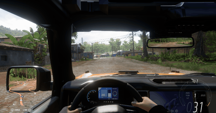 此外它的转向精度特别跟手——微调方向时不会有“虚位”,比如在雨林路段我需要避开水深的路段,不想掉太多速度,这时候只要轻轻微调一下方向盘,车子就能精准响应;大幅转向时也很顺滑,没有齿轮机方向盘的“齿感”,像从火山上下来时需要过很多连续发夹弯时,只需要控制好速度带点刹车,连续转向非常丝滑。