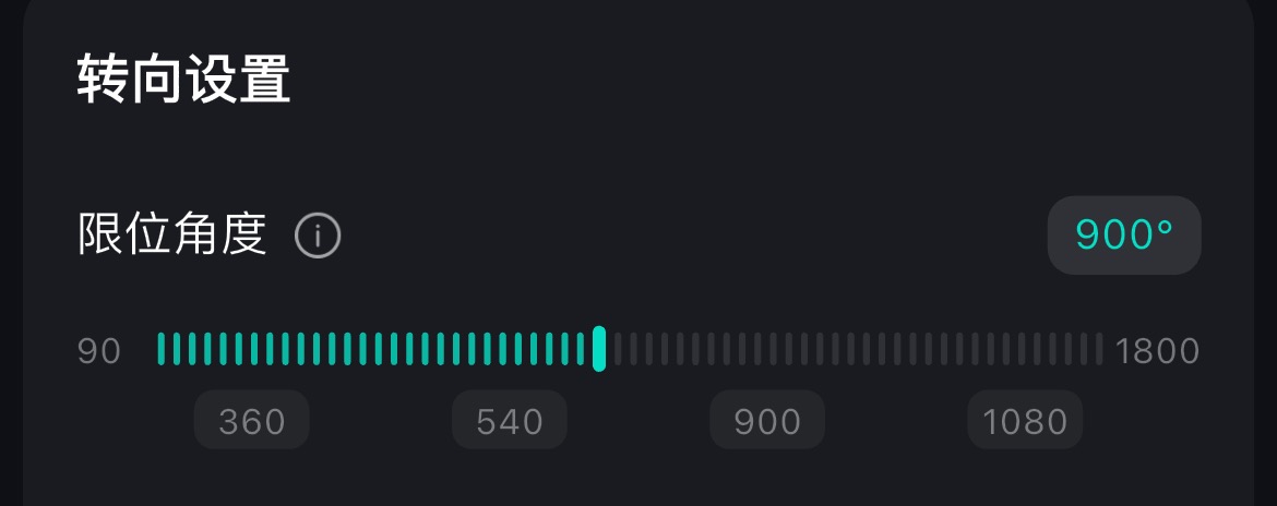 对于地平线5,我只改了两个参数:一是把“限位角度”调到900°,能匹配游戏里大部分车型的转向幅度,不用频繁“打满方向”;二是把“转动稳定性”调到30%,这样既不会因为阻尼太轻导致高速行驶时方向盘晃,也不会因为太重让手腕累。“力反馈强度”我直接拉满100%,如果觉得游戏里反馈太猛,在游戏内调就行,不用动设备参数,因为我亲测如果设备端调低,过长大弯时会侧向力反馈丢失情况,反而影响操控。