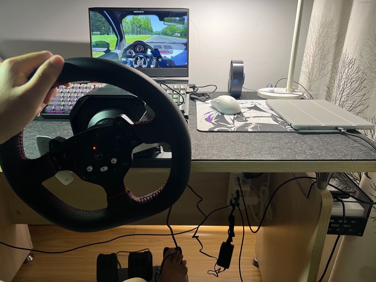 以前刚用手柄练过弯时,全靠提前预判:看着弯道角度估摸着推摇杆的力度,经常因为提前预判错而错失最佳转向时机,但上手这台方向盘后因为是直驱电机的原因,力反馈细节上丰富且精准,直接在驾驶中把游戏中的路感变成了现实中能感受到的震动。