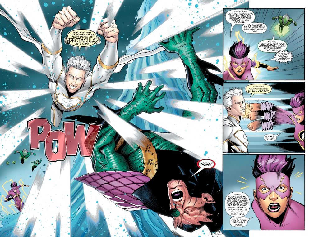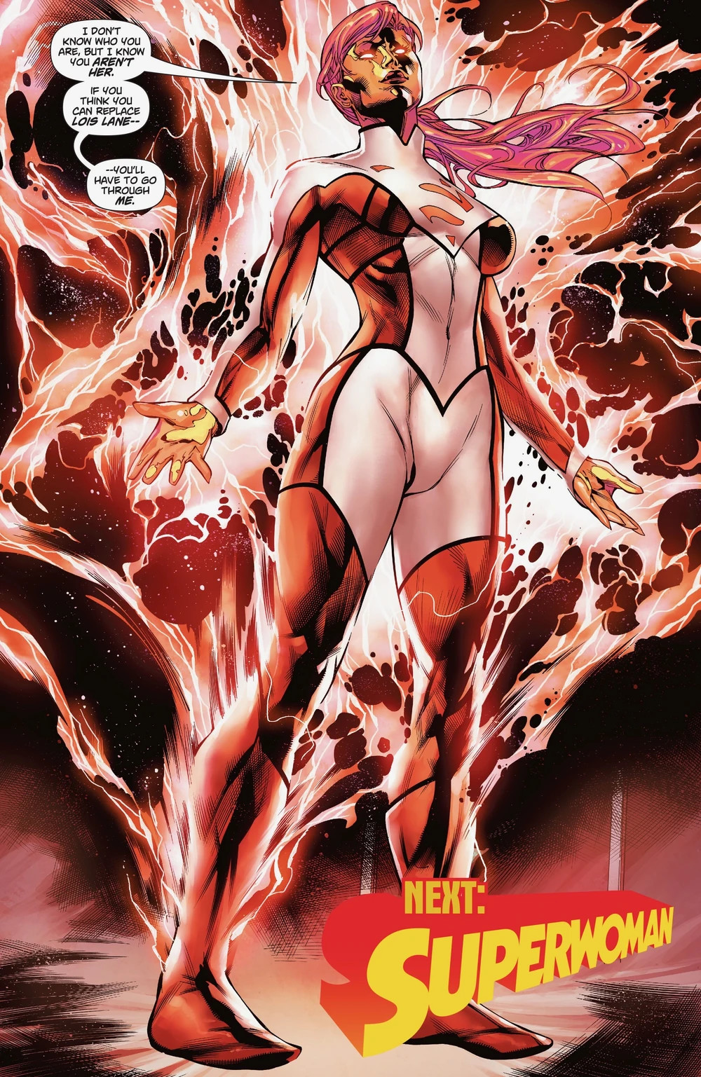 而大龙这里将其列入超人家族,肯定不止于讲述她的记者生涯,更重要的是,在重生系列后,编剧来了个大的创意——给路易斯也赋予了超人的力量:在对付一个被注入了新52超人力量的反派时,路易斯遭到其自爆辐射波及,阴差阳错地获得了超人体验卡。