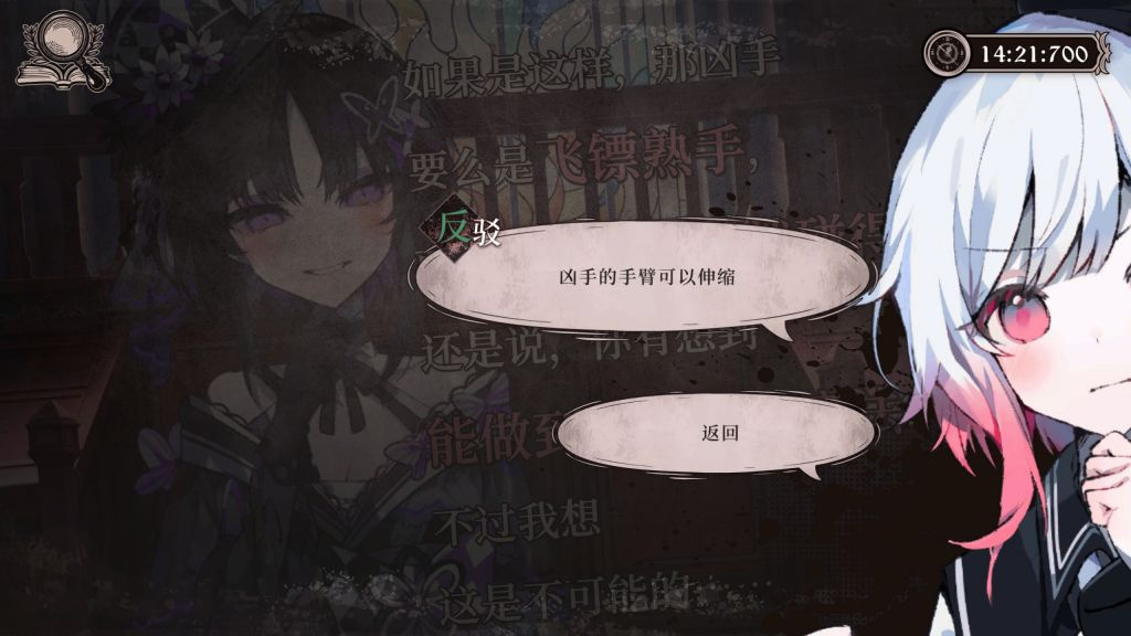 整個流程中沒有什麼過渡,也沒有任何暗示,當你接受了自己沒辦法翻身,心裏暗罵這是什麼溝槽的推理遊戲時,它的突然出現,直接將案件切換到了下一幕。