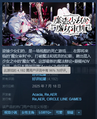 到了正式版發佈,口碑再一次反轉,發售第三天遊戲就已經“好評如潮”,直到今天《魔女審判》的好評率依然維持在傲人的96%。
