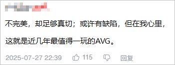 “不完美,卻足夠真切;或許有缺陷,但在我心裏,這就是近幾年最值得一玩的AVG。”