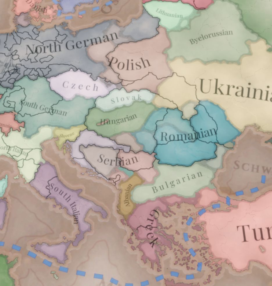 上一篇日誌(鏈接:https://pd.qq.com/s/craqc8qvs)的讀者可能記得德意志民族主義運動的客串出演。德意志民族主義運動是三個1.10版本全新民族獨特運動中的一個,另兩個分別是意大利與南斯拉夫(或叫伊利里亞)民族主義運動。這些運動擁有民族自由主義意識形態,將幫助推動德意志、意大利語南斯拉夫諸國完成統一。在德意志諸國與意大利諸國,該運動將替換文化多數派運動與激進派運動。在南斯拉夫,考慮到南斯拉夫運動經常會與極端民族主義發生衝突,我們決定讓二者互相競爭支持者。