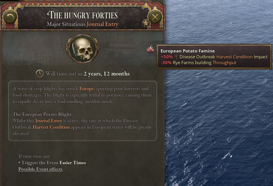 爲了還原史實,我們同事引入了導致人民之春的歷史事件——歐洲馬鈴薯饑荒。這個全新的日誌將反映1840年代的歐洲,那個因馬鈴薯歉收而無法果腹的“飢餓的四十年代”。在此期間受災最嚴重的愛爾蘭地區,超過100萬人失去了生命。