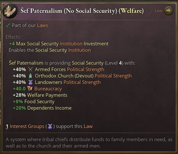 我們接下來要介紹的是黑山的最新法律變體。遊戲開始時,黑山是一個相當奇特的國家——更像是聚集在山丘上的部落聯盟,而非一個有組織的國家。這些部落主要通過襲擊奧斯曼帝國的領土來維持生計。爲了最好地體現這種體制,黑山擁有兩個獨特法律變體——婦女下田勞作和酋長家長制。