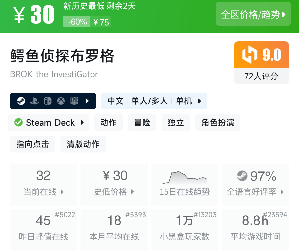 一款劇情向的獨立冒險遊戲,遊戲體量雖然很小,但流程沒有很繁瑣,環環相扣,一步步找到最後的真相,遊戲荒的時候可以試一試,30的價格有點略貴。