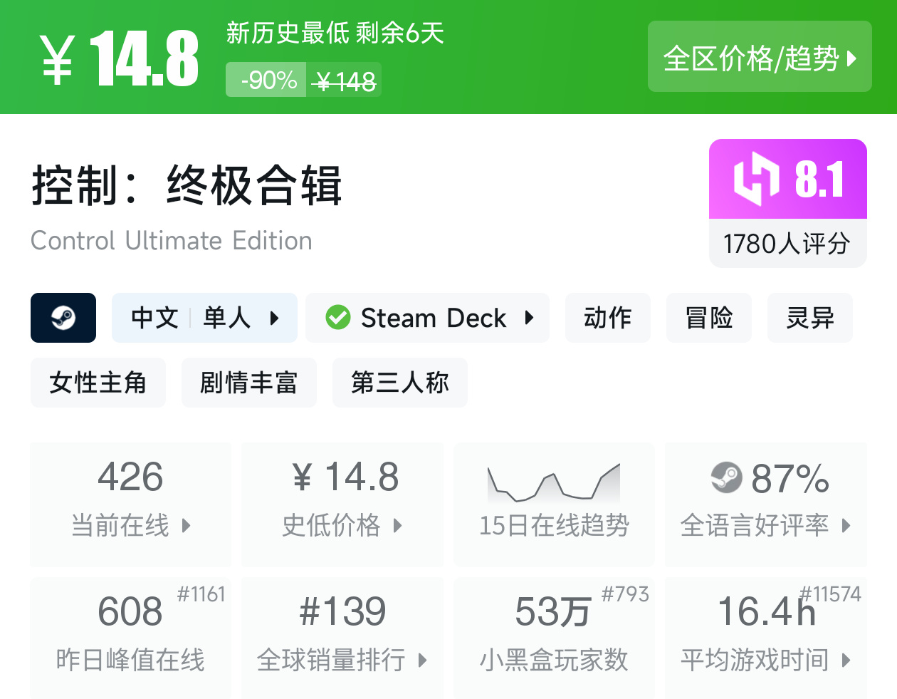 本週有多款3A大作來到了史低價,以及經典心理驚悚神作《心靈殺手》來到了0.5折新史低!