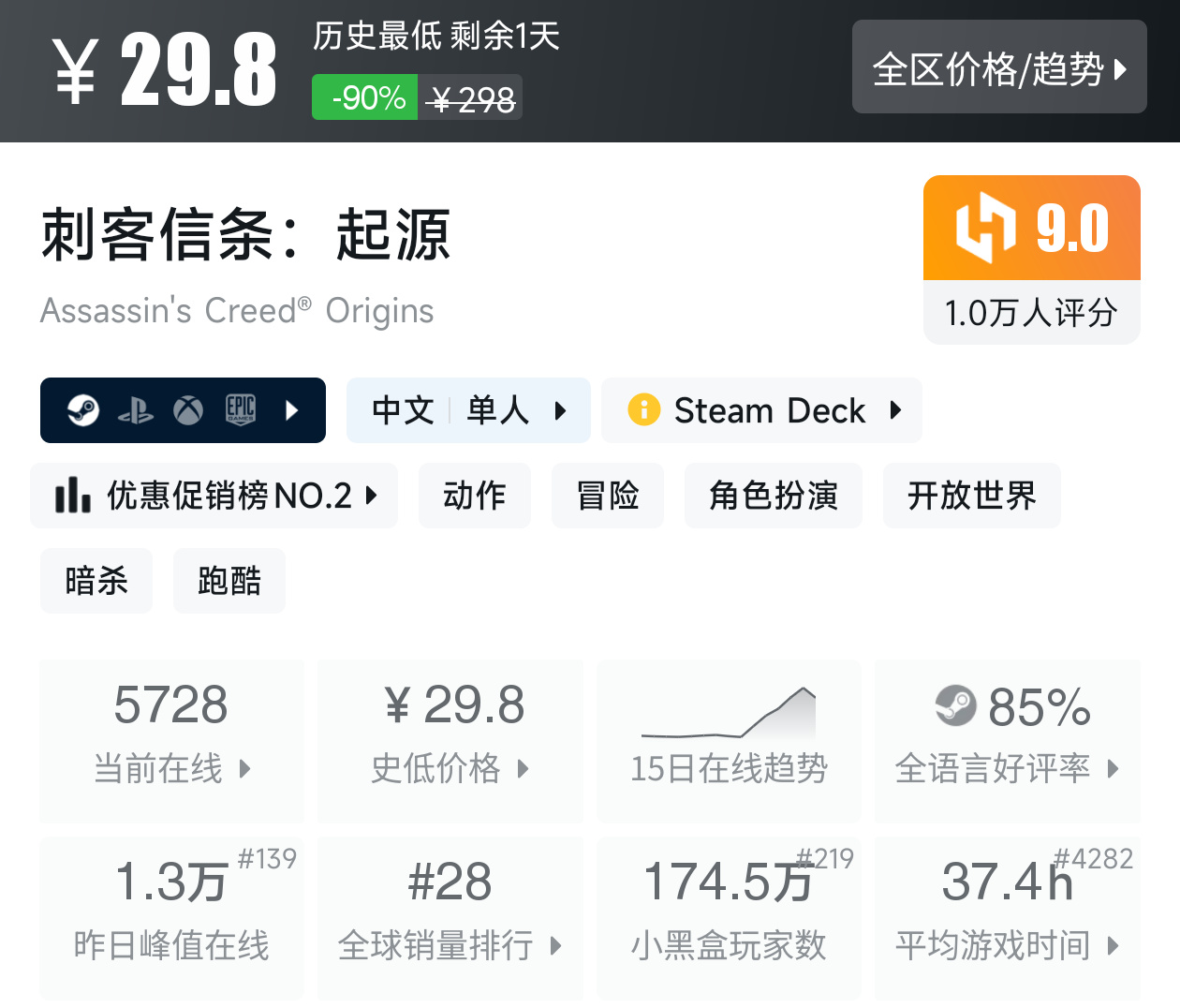 刺客信條神話三部曲的第一部,也是育碧刺客系列第一部的罐頭,作爲罐頭是又臭又長,但風景還是很不錯的