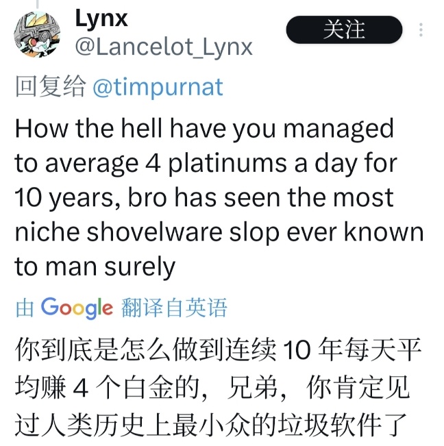 按他自己說的節奏估算 —— 8 年 × 365 天 ≈ 2,920 天,15000 個白金 ÷ 2,920 ≈ 每天約 5.14 個白金。也就是說,若他每天穩定投入 5 小時並專注於“刷白金路線”和挑短/易刷的遊戲,理論上是可實現的(現實中有漲有落、也會混入長通關的大作)。