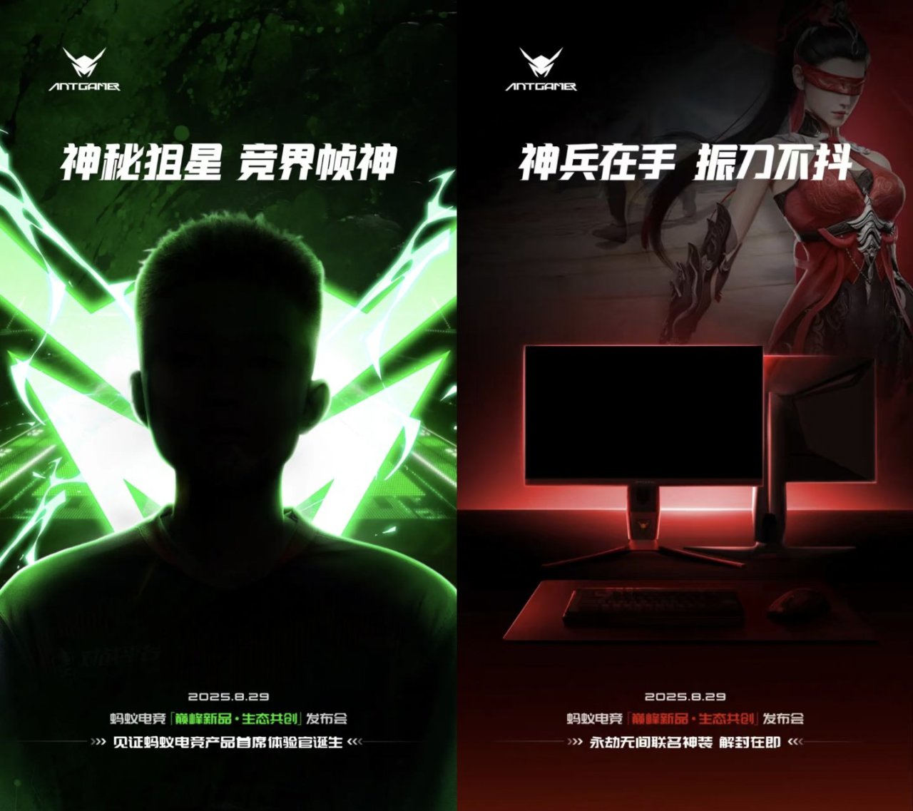 除了这个750HZ显示器外,蚂蚁电竞似乎在29号还有一些其他的新品也准备发布,似乎适合永劫无间的联名,看他这个海报的样式,应该就是一款显示器,一款键盘,一款鼠标。