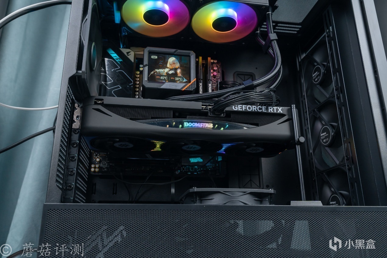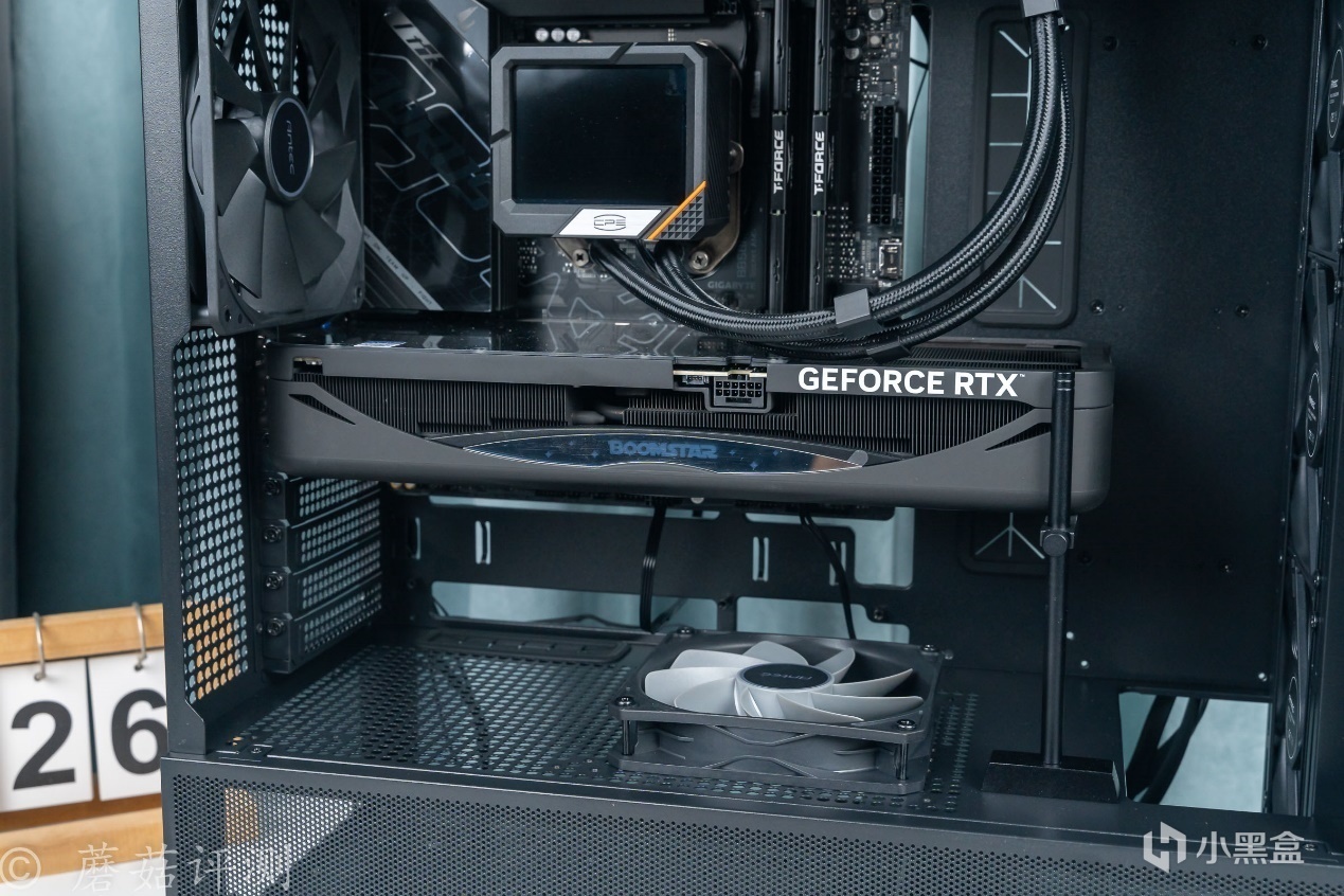 ▼除了机箱前部标配的三把机箱风扇之外,机箱内部还有两把机箱风扇。另外,这款机箱的内部空间非常大,可以轻松容纳影驰RTX 5080星曜NOX显卡这种又长、又宽的显卡。