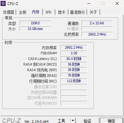 ▼内存默认打开EXPO,频率稳定在6000MHz,时序30-36-36-76。
