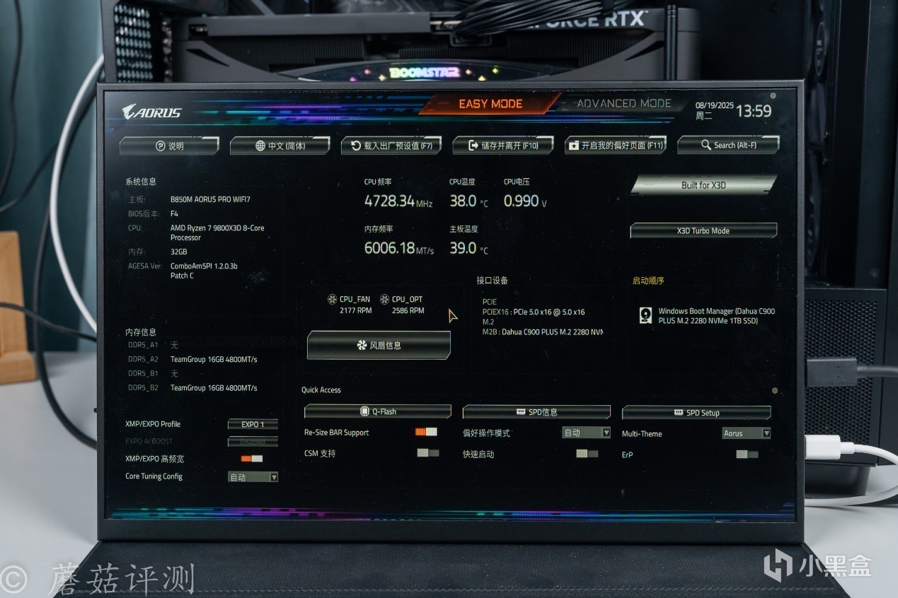 ▼技嘉这块B850M电竞雕主板的BIOS真不错,简单模式下内容丰富,可以看到各种主要的硬件参数,也可以对一些常用的功能进行设置,例如内存的XMP、EXPO。