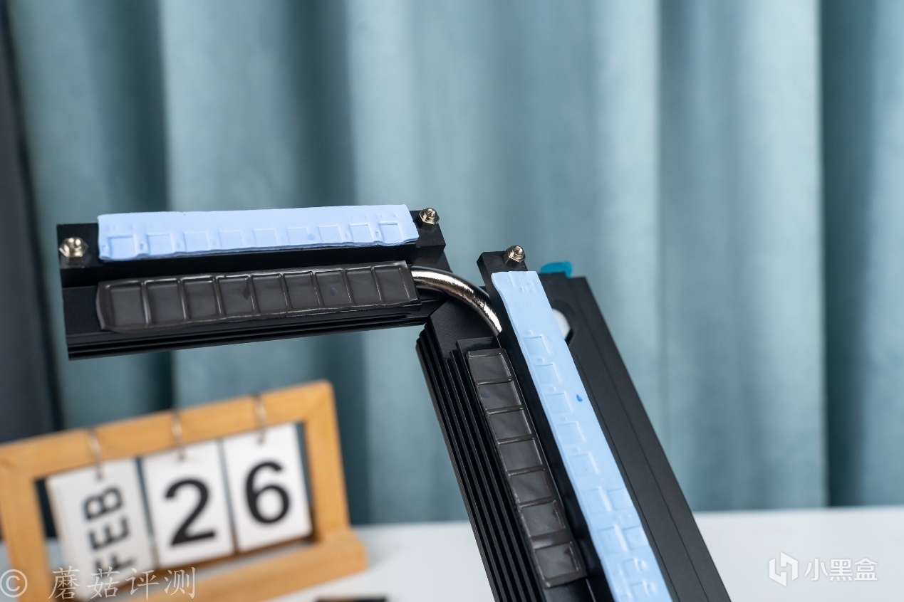 ▼供电电路的两块金属散热件之间还有一根热管均热,可以提高整体的散热效率,电感和Mos部分还有导热垫贴附,可以提高热量传递效率。