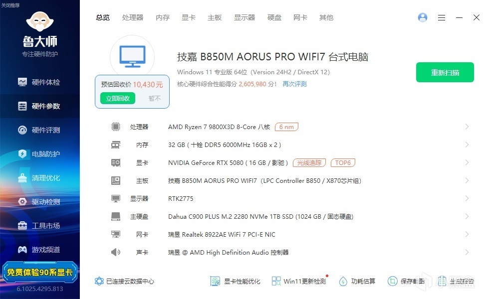 六、技嘉电竞雕B850M AORUS PRO WIFI7主板 测试