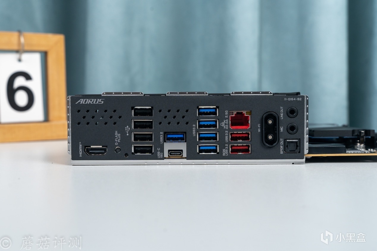 ▼主板后部,从左到右依次是HDMI视频输出接口、Q-FLASH PLUS安检、USB 2.0接口4个、USB 3.2 Type-A Gen1接口5个、USB-C 10G接口1个、USB 3.2 Type-A Gen2接口2个、2.5G的Lan口1个、WIFI天线插座(支持快易拆),以及音频接口3个,其中一个为光线Line。