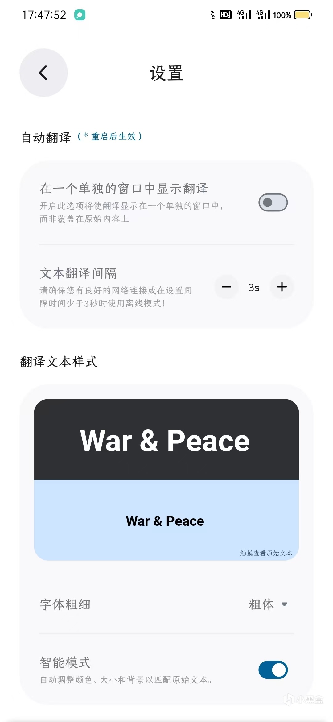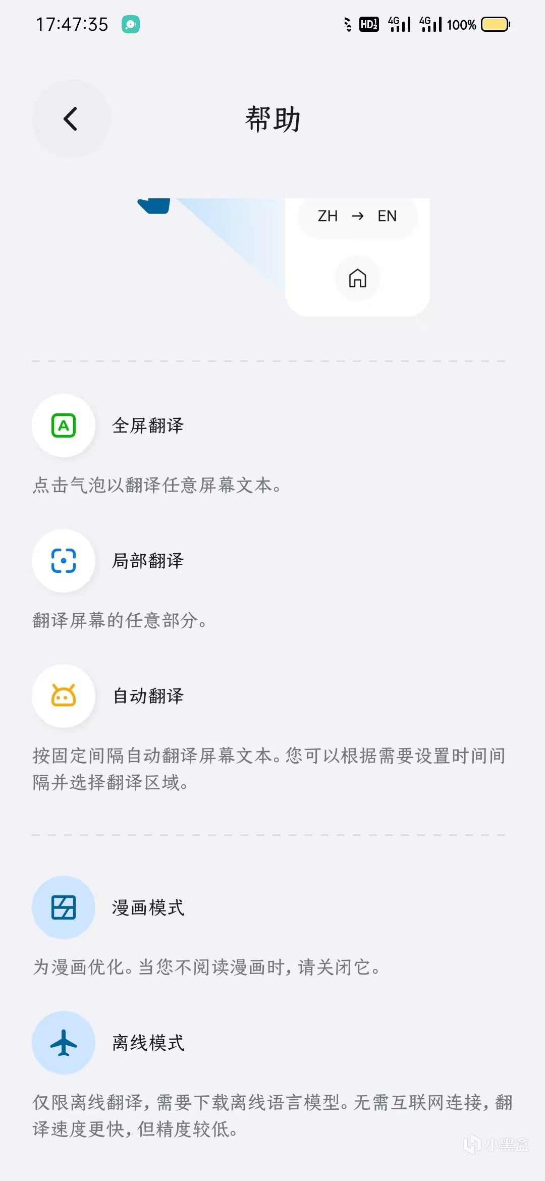 然後是重頭戲“自動翻譯”在設置裏按需調好數據之後,只需要在主頁選擇“自動翻譯”模式就可以了