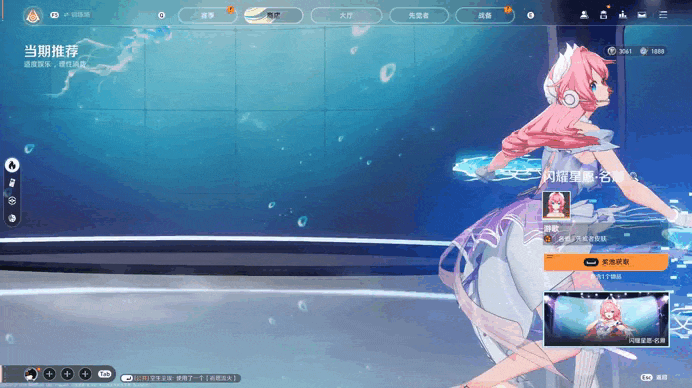 点进商店后,滑出一个穿着好看小裙子的少女爱豆,流畅的动作飞扬的水母群。