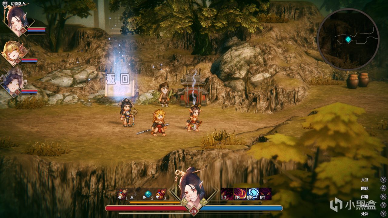 土地庙的特殊机制一定要知道,它可以存档,也可以靠近点两下交互,一瞬间回满血、回满蓝、还可以复活死亡角色(用不上返魂丹),而且建议养成多存档的习惯,每一次看见土地庙大概率意味着要打强力的妖怪了