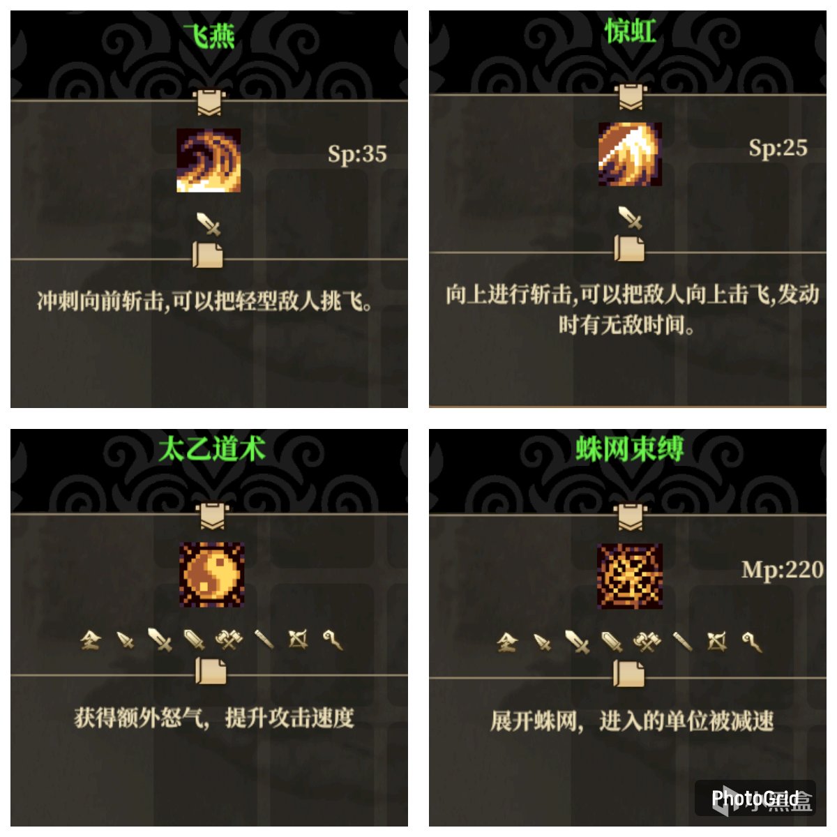 她的长按特殊攻击是蓄力挑飞敌人,还有两个技能也是挑飞,蜘蛛网感觉不太好用,但这个“太乙道术”可以立刻增长一节怒气条,可以更快发动一些需要一定怒气才能发动的技能,或许可以与其他技能形成无限连搭配(毕竟普攻是获得怒气的最主要来源)