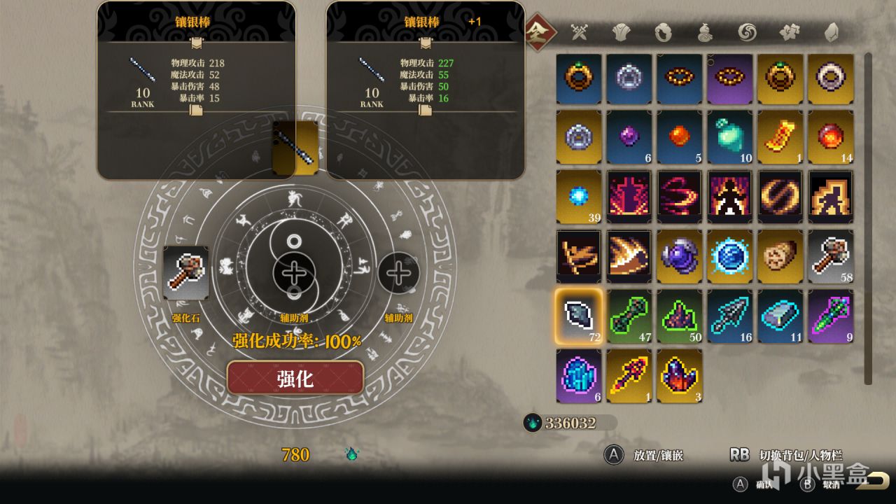 还要提一嘴强化武器,其实整容成型伤害上去就是锦上添花了。一般来说,对于可以强化的装备,前两次是非常容易成功的,后面几次如果还要百分百成功率还要刷高阶强化锤与强化石,或者存档读档,而且还要先卸下武器,比较麻烦,可以只搞前两次或者不搞